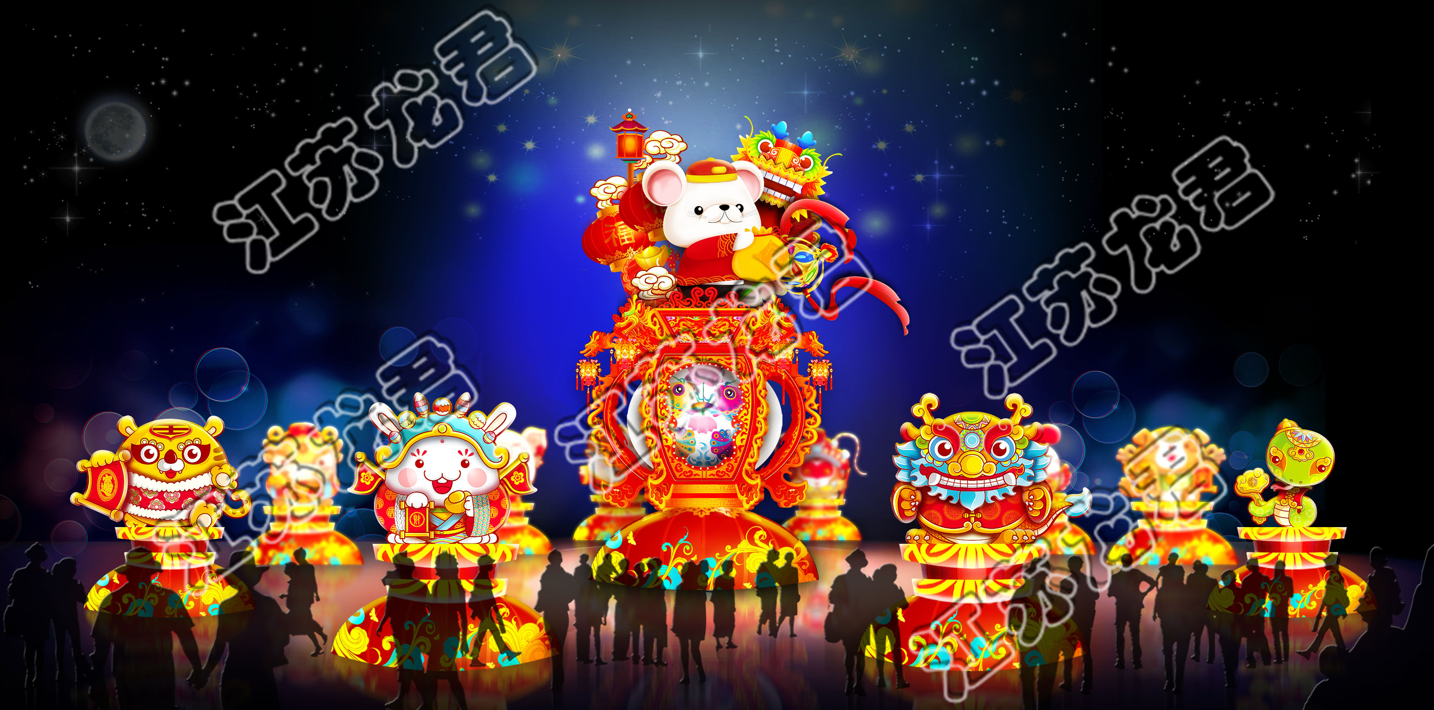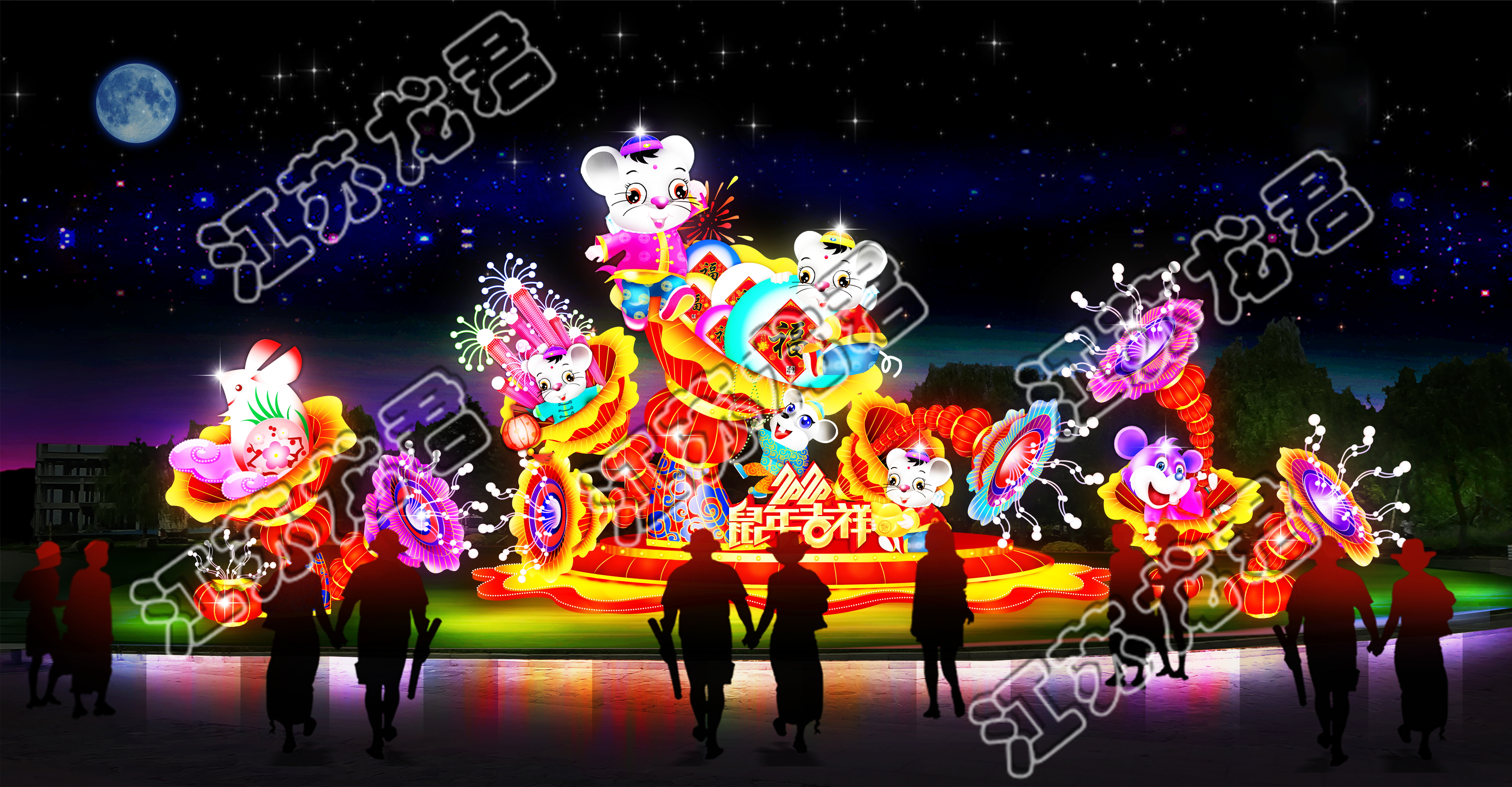 2020鼠年彩燈設(shè)計(jì)制作方向并不受局限,更重要的是能夠帶給人們帶去節(jié)日的歡樂,感受到濃濃的新春氛圍,同時(shí)向人們?nèi)罕妭鞑ゲ薀粑幕?,這也是龍君展覽制作彩燈多年一直秉持的宗旨,做彩燈文化的傳播者。