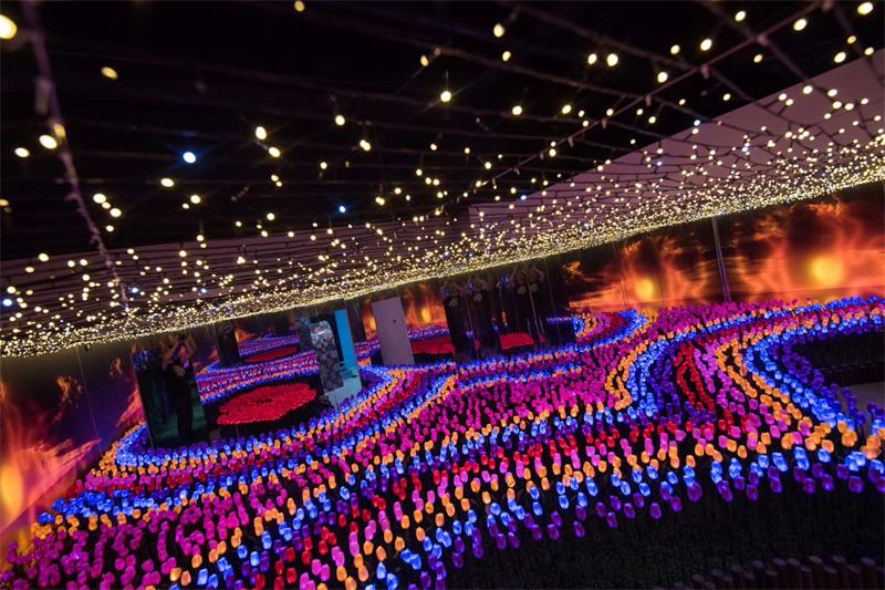 3、千紙鶴燈海—雖然不是花,但是看到千萬只千紙鶴在黑夜中閃耀光芒你會有什么感受?頓時感覺充滿希望,千紙鶴有著美麗的傳說和文化底蘊(yùn),成為人們的感情寄托。