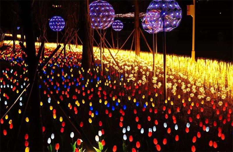 5、蒲公英燈海—蒲公英有比較大的燈光造型,還有小型的插地?zé)?,不管哪種燈光造型都是非常唯美的。蒲公英燈的顏色可以進(jìn)行五彩變化,建議搭配其他燈光造型使用。