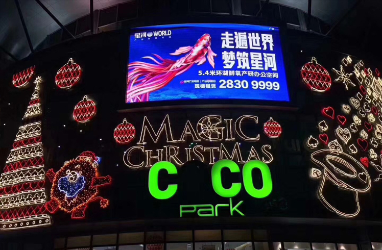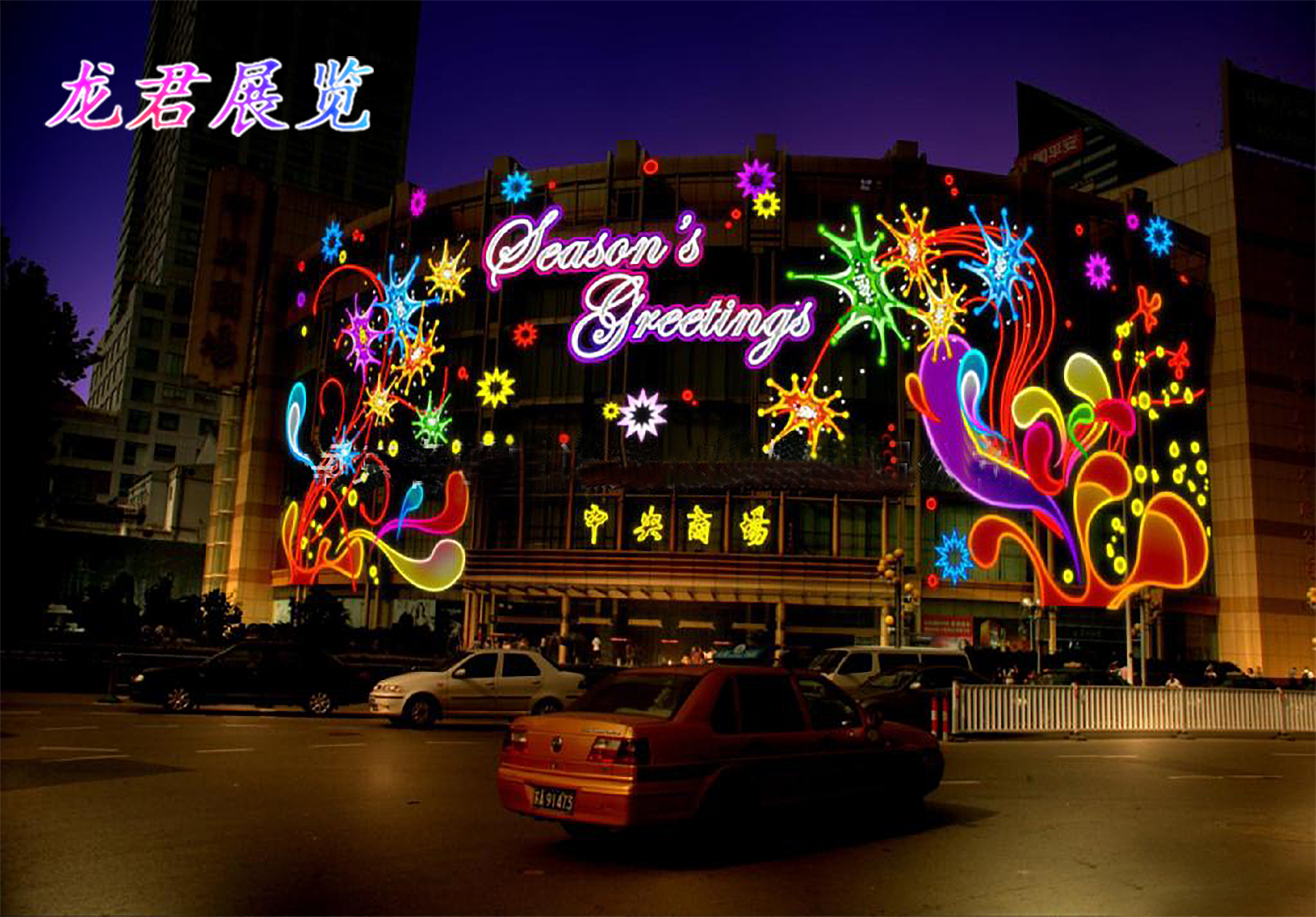 酒店商場圣誕led燈光裝飾 幕墻燈飾畫案例 可來圖加工定制