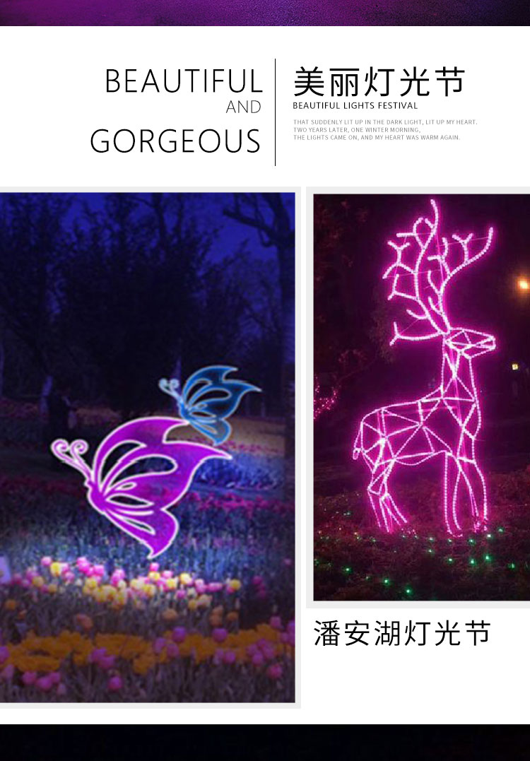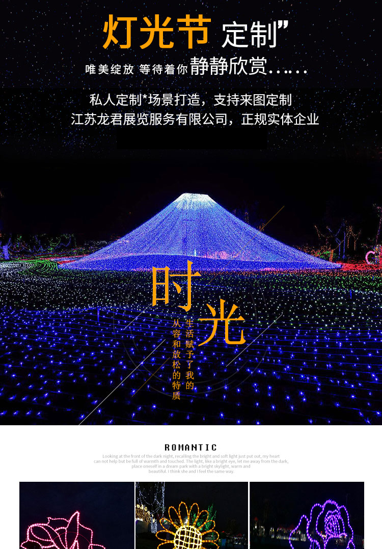 產(chǎn)品名稱:夢幻燈光展設(shè)計(jì)制作、廠家直銷出租出售更新時(shí)間:2018/2/23 9:53:32 |
