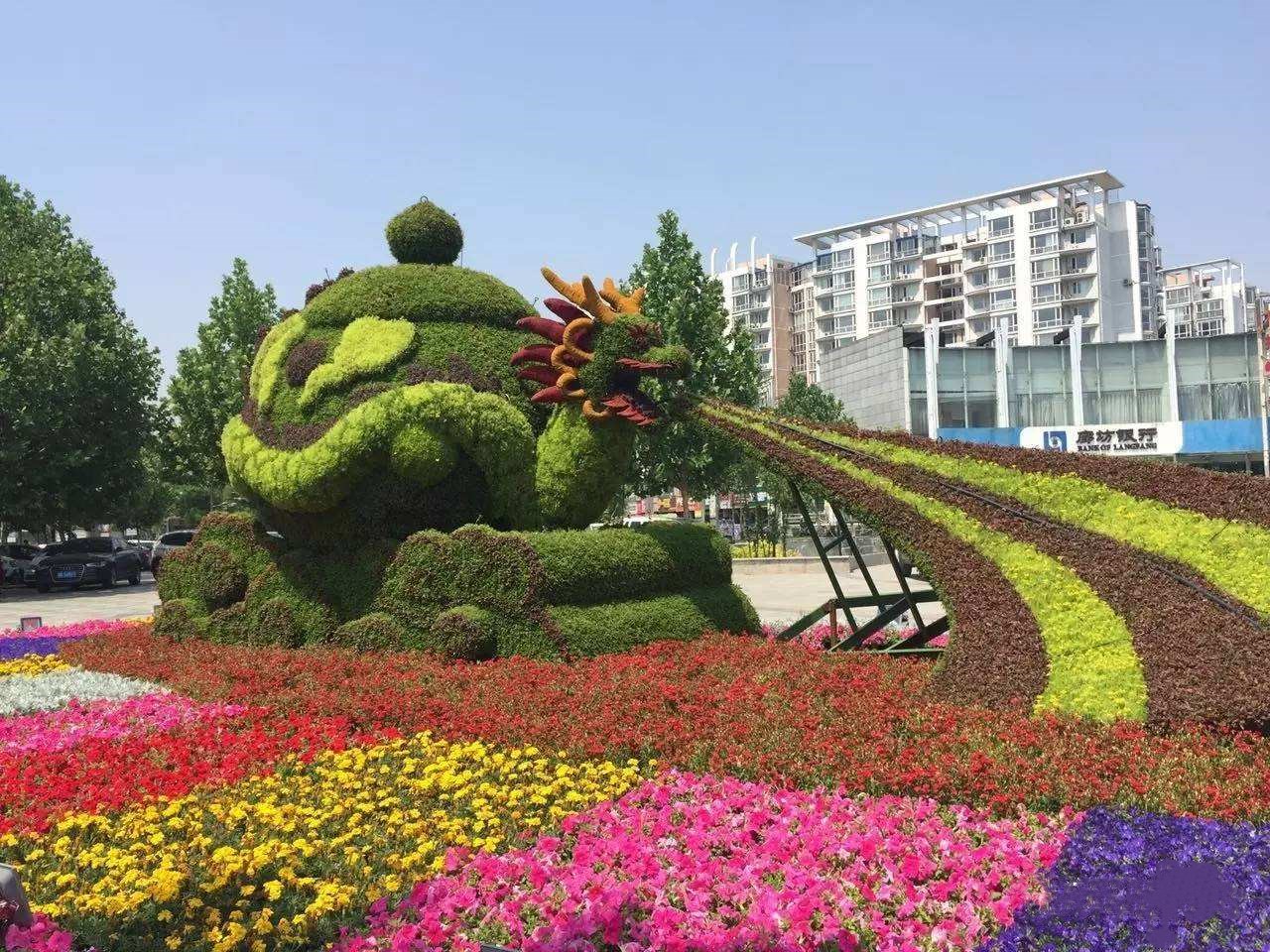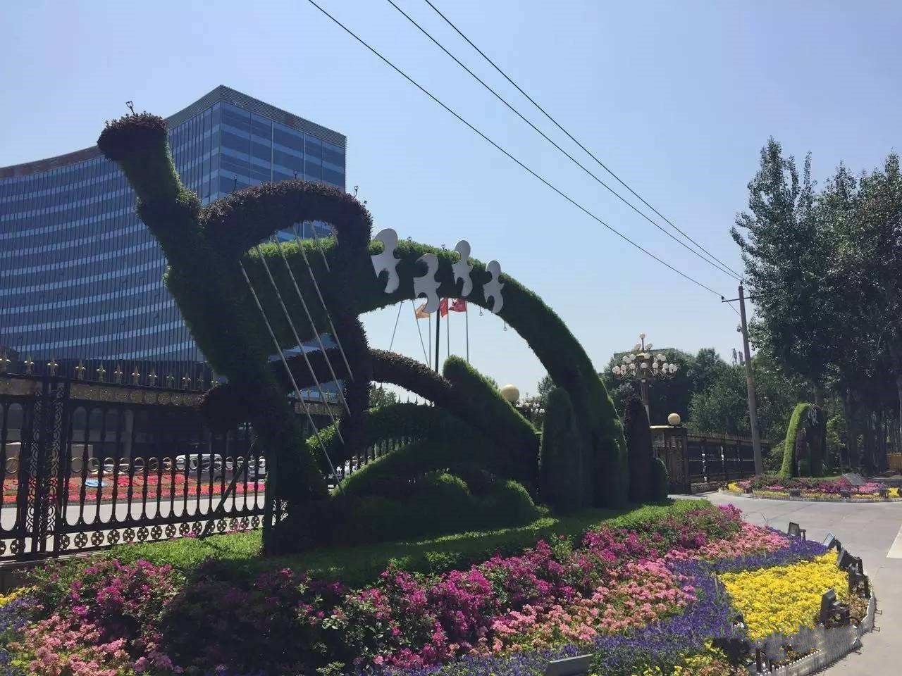 綠色雕塑是指用各種植物樹木精心培植修剪而成的姿態(tài)各異、氣韻生動的五彩繽紛的立體綠雕藝術(shù)形象。綠色雕塑被譽為世界園林藝術(shù)的奇葩,是有生命的植物雕塑,一般內(nèi)設二維或三維立體鋼材構(gòu)架,然后在構(gòu)架上填充栽培土,再于其上種植色彩斑斕的一年生或多年生小灌木或低矮草本植物,即采用掛泥插草或卡盆缽床結(jié)構(gòu)工藝把不同顏色的花草覆蓋在結(jié)構(gòu)造型的表面,巧妙地把草花、微噴滴灌及夜景照明技術(shù)同雕塑造型與花卉園藝結(jié)合在一起,使綠雕造型更加優(yōu)美,色彩更加鮮艷、花期更長、養(yǎng)護也更便利。因此,綠雕是充滿生機的"花卉雕塑",是人類運用自然力量創(chuàng)造出的又一園藝文明。它把園林和雕塑藝術(shù)相結(jié)合,巧妙地將“人、動物、自然.”這一主題融合在美化城市環(huán)境之中,具有提升城市品味形象,保護城市環(huán)境等奇效。